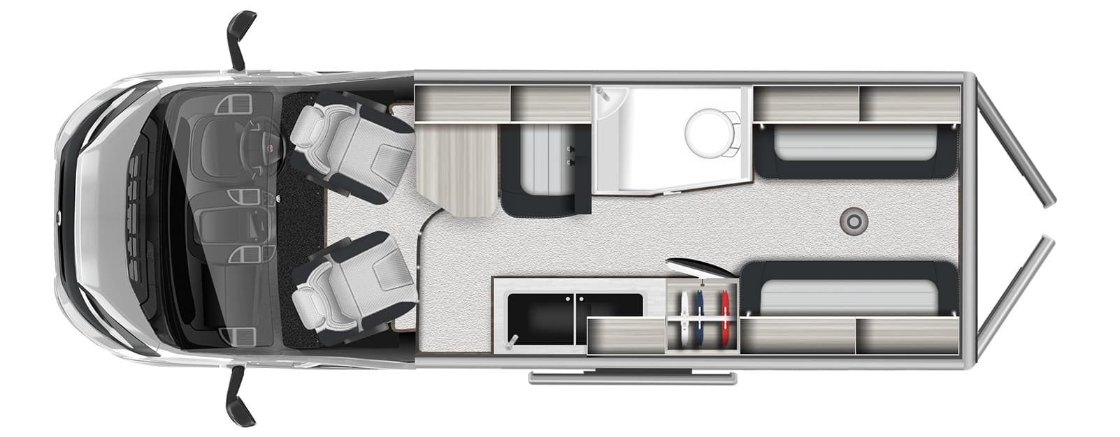 Built with functionality in mind, the Auto-Trail Adventure comes with all of the practical features you could ever need for a short weekend away or long touring voyage, built with the active family in mind. Each model comes with a pop-top roof and solar panel as standard (wattage dependant on model), so you don’t have any worry about wild camping in any of our Auto-Trail Adventures.