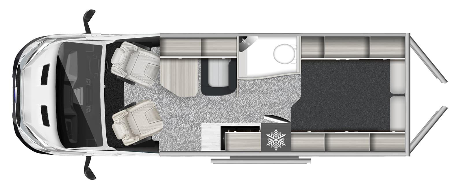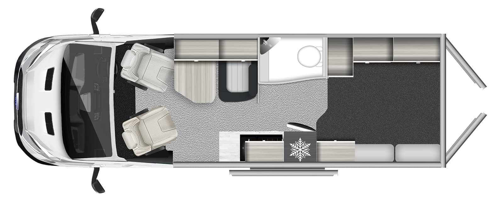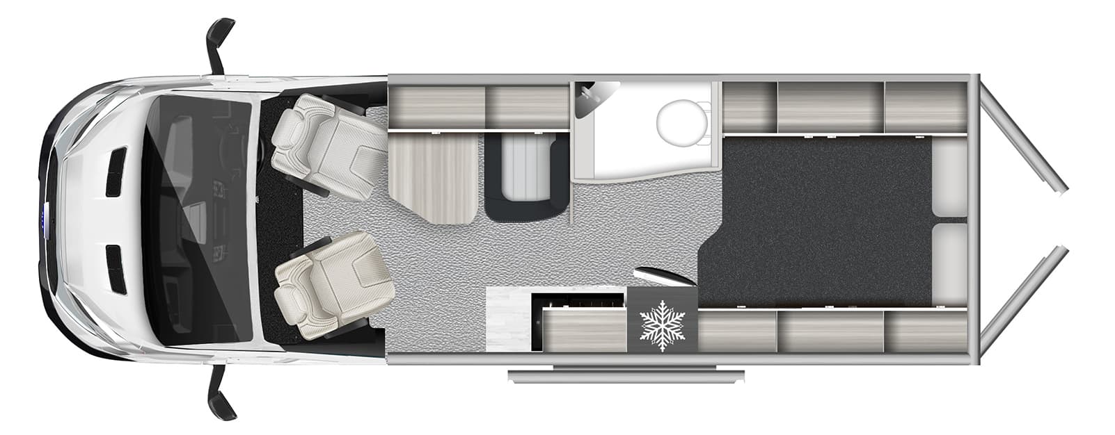 You’ll love the plush, soft furnishings included in the new Auto-Trail Expedition, complemented by modern upper locker doors with beautiful Salinas Oak wood. All new Auto-Trail campervans for 2026 come fitted with the chassis mounted Whale Heat Air space and Expanse water heating system, which features an easy-to-use heat control panel. Together, with a new pull-out bed mechanism and additional under-bed storage, being on the road has never felt better.