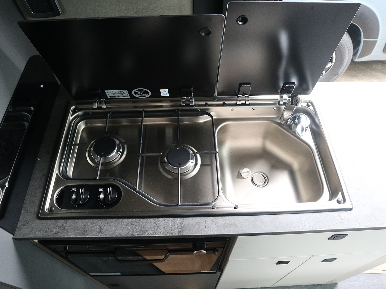 Perfect for young families, this campervan boasts two separate double beds, including a handy pop-top roof bed above the living area.