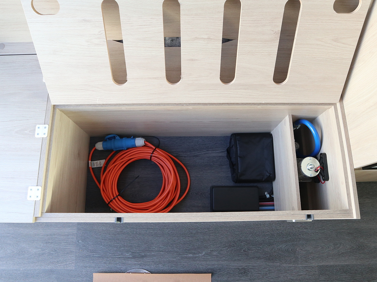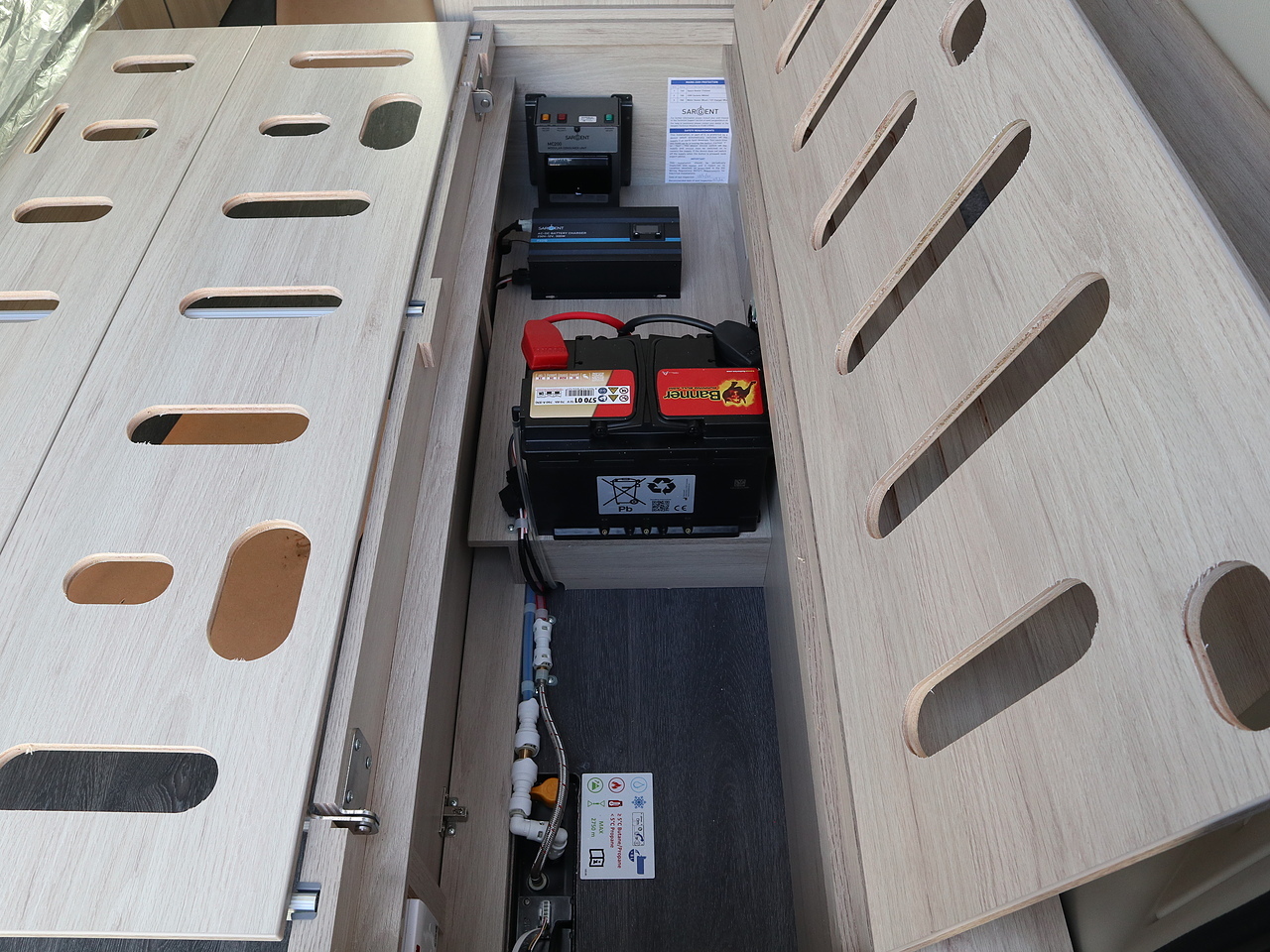 -Heating & Water: It uses the chassis-mounted Whale HeatAir and Expanse systems for efficient heating and hot water, which also saves interior storage space.