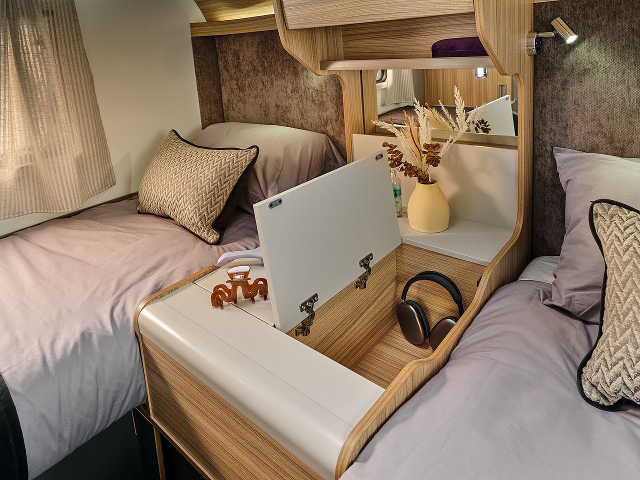 Featuring a sought-after twin single bed layout over a large rear garage, the 75-4T provides excellent sleeping comfort and generous storage – all wrapped in a modern, streamlined design that’s as good to drive as it is to live in.