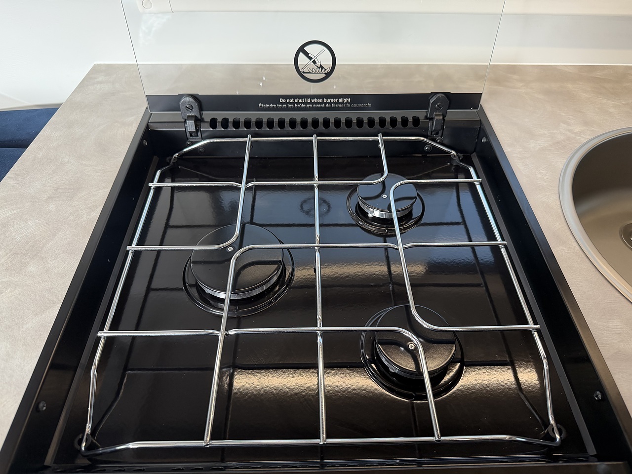 Kitchen 3-burner gas hob, oven/grill, 90L compressor fridge