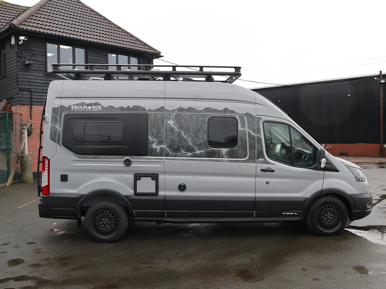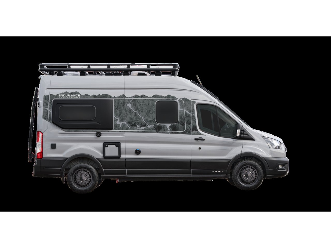 • Ford Transit “Grey Matter” with Trail front grill, skid plate, matt black trim, and graphics