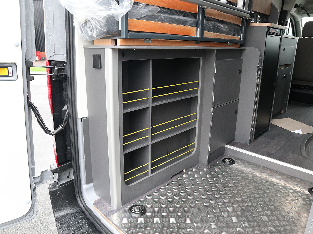 • Truma 130W solar panels, 2x 80Ah AGM batteries, and switch-mode charger