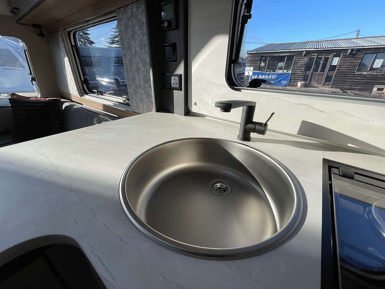 The Portofino combines a highly desirable rear island bed, practical mid washroom, and spacious 8ft-wide lounge—all within a lightweight, easy-to-tow single-axle design. This layout continues to be one of the most sought-after in the Bailey Pegasus Grande Black Edition lineup and remains a top choice for UK buyers wanting comfort, style and versatility.