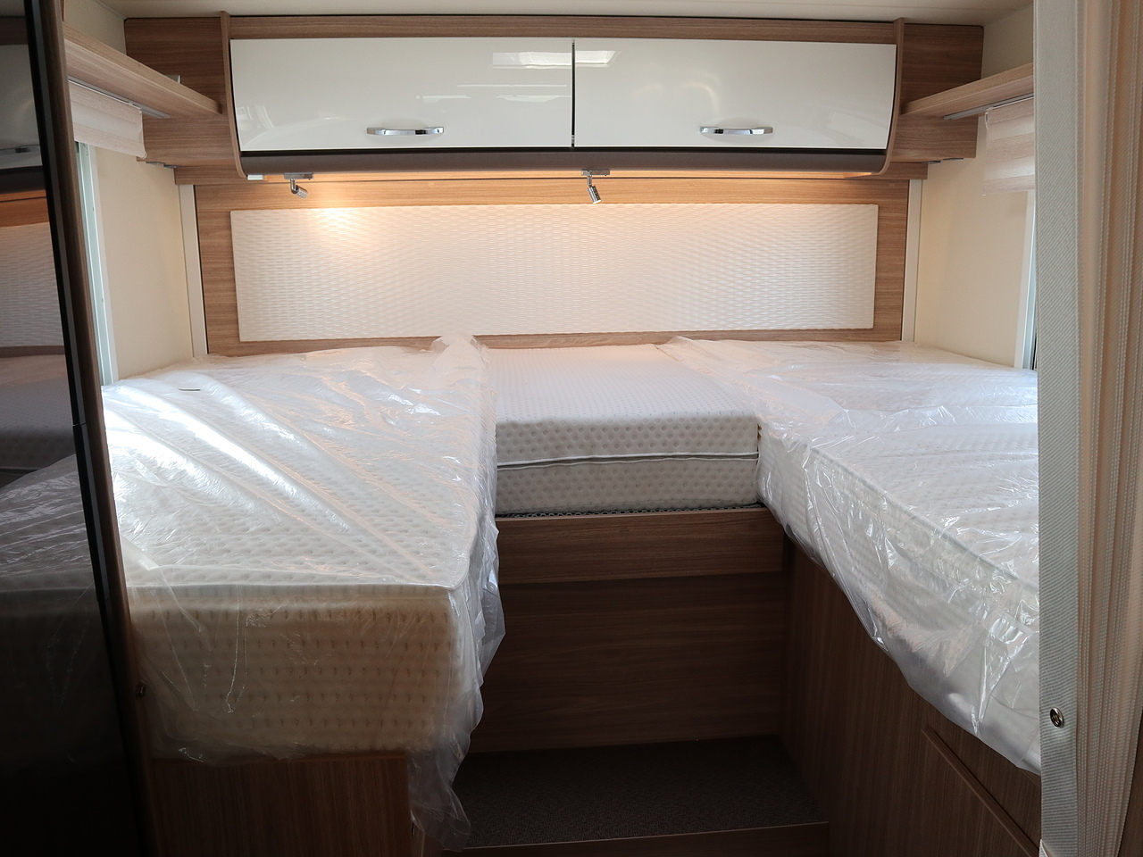 Garage: A large, full-width garage is located underneath the rear single beds. It is accessible from both sides of the motorhome.
