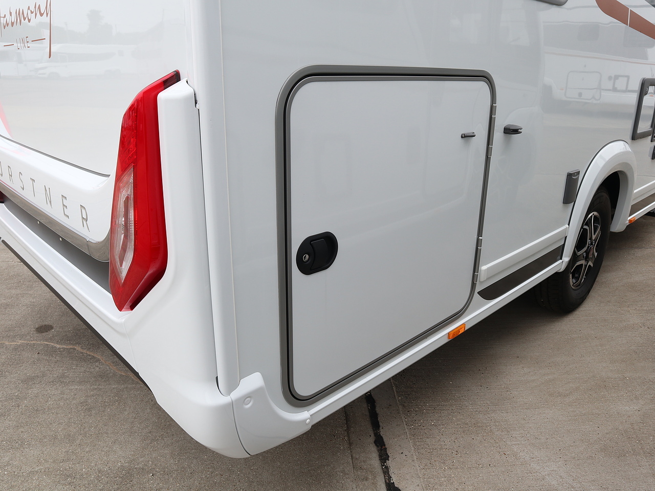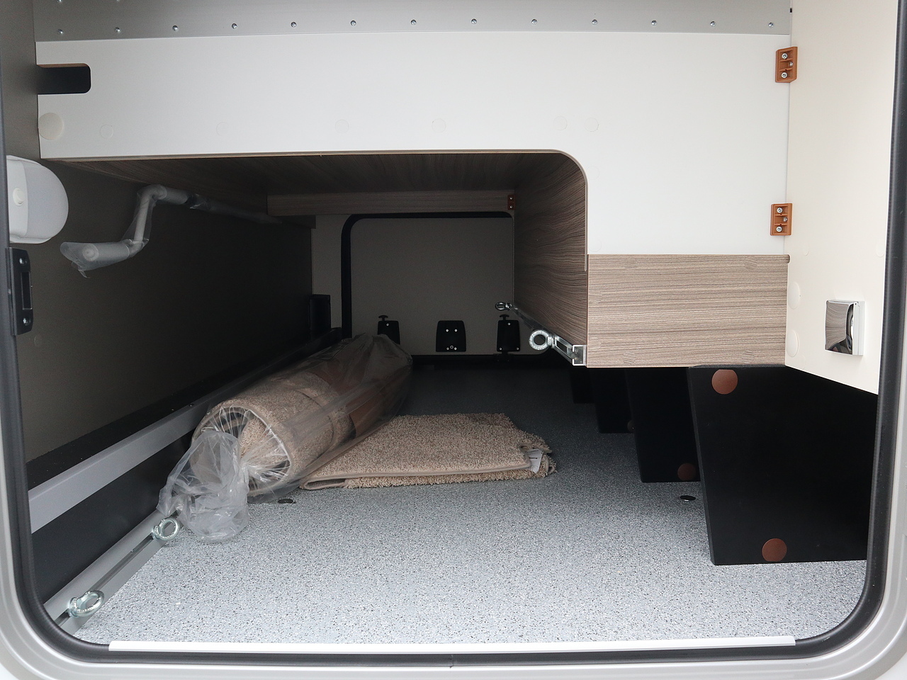 Storage: An external locker is located under the rear lounge, which is spacious.
