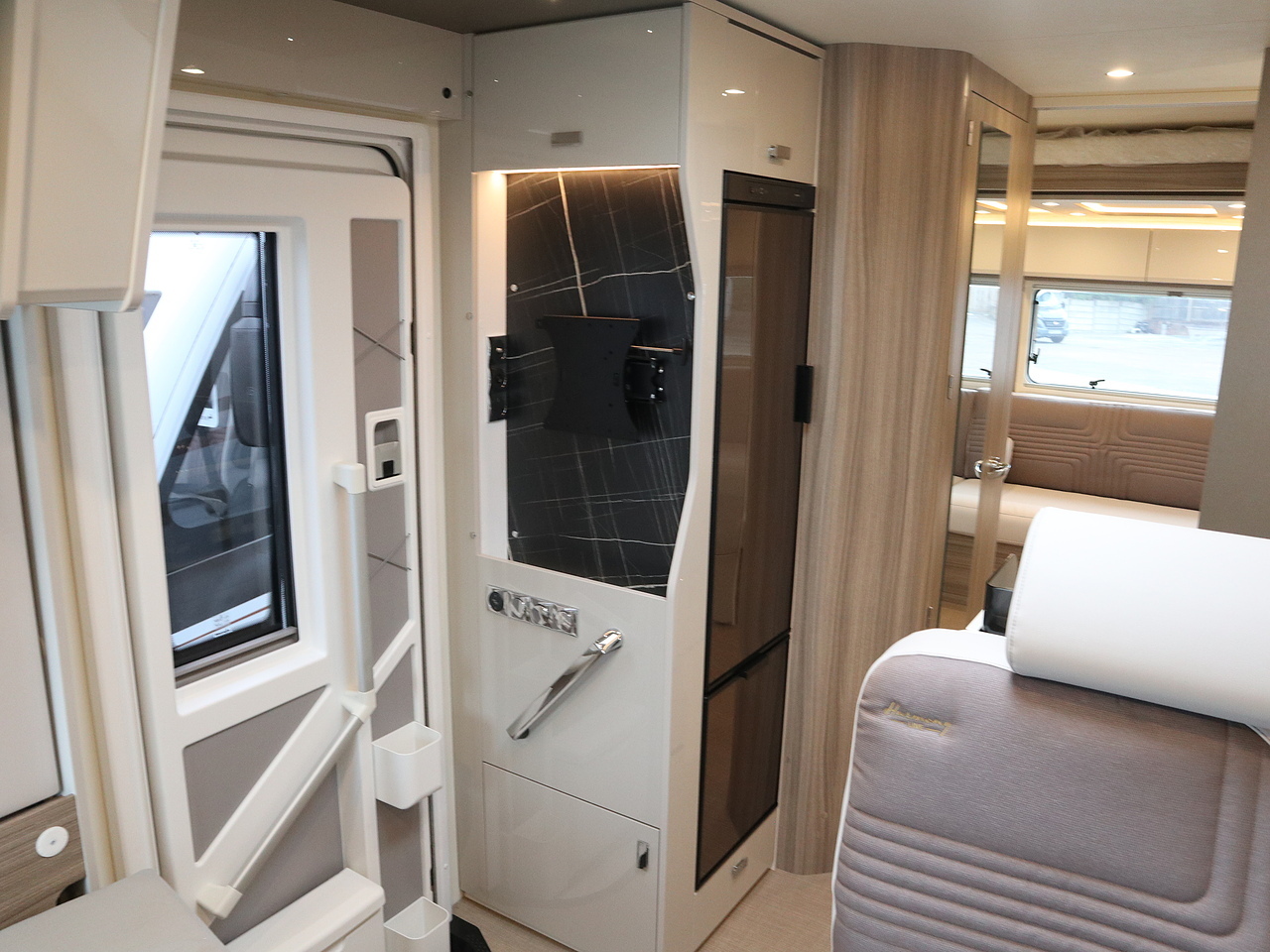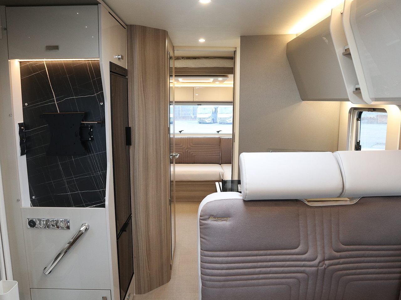 The Lyseo I 744 is designed with a unique interior layout featuring two separate living areas.