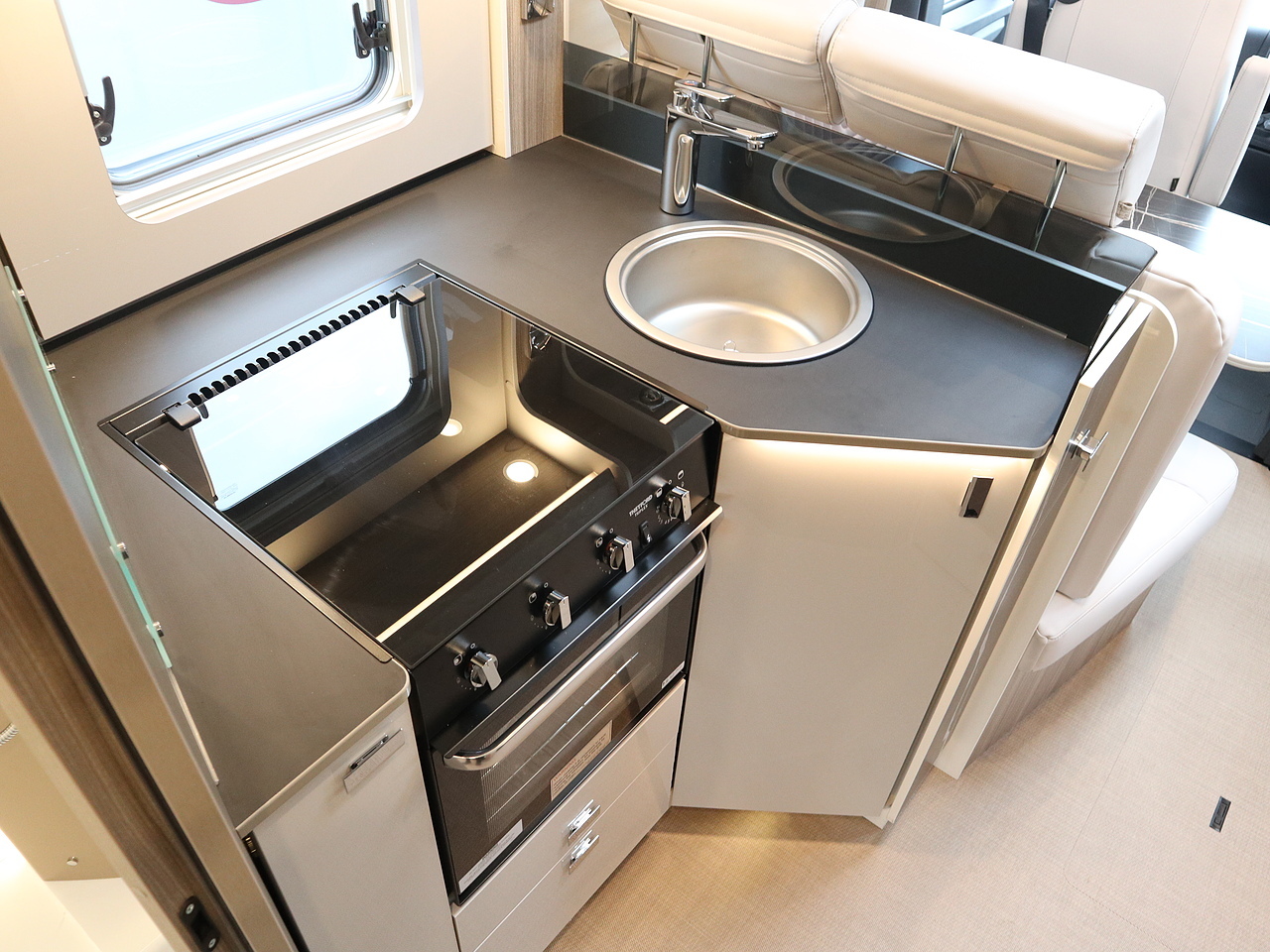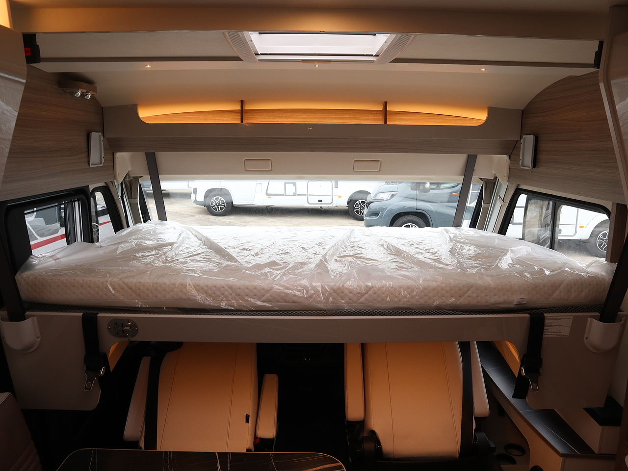 The Bürstner Lyseo I 744 is a 4-berth, A-class integrated motorhome, it features a spacious double-lounge layout and two electric drop-down double beds. It features a large rear lounge and a front dinette area, offering flexibility for both relaxation and sleeping.