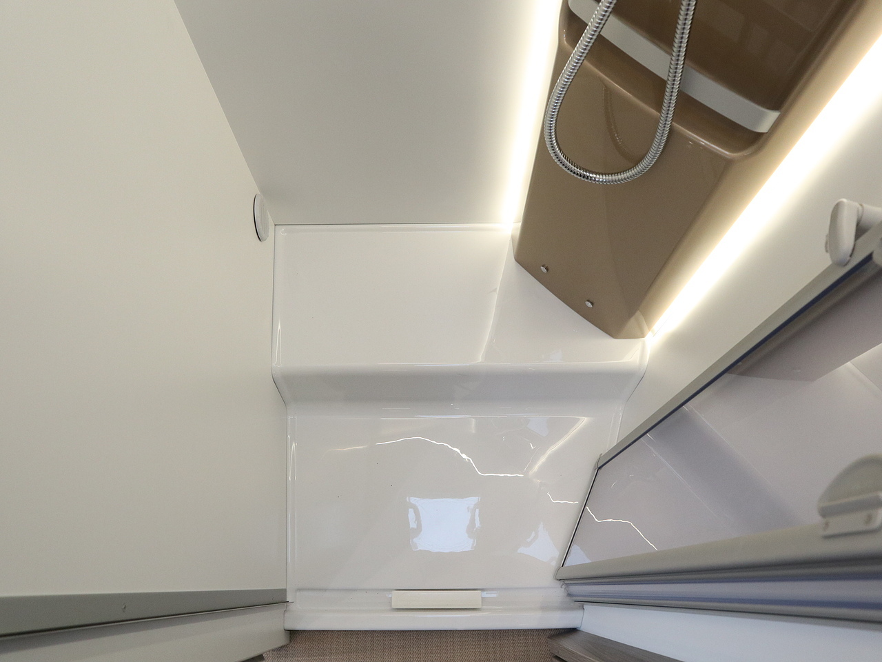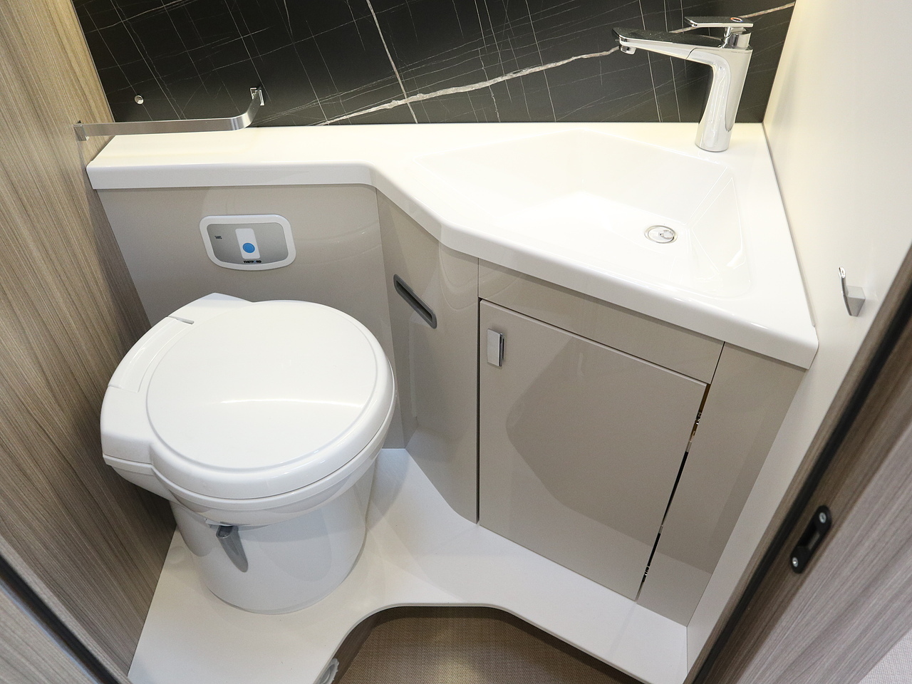 Washroom: Features include a cassette toilet and a separate shower cubicle.