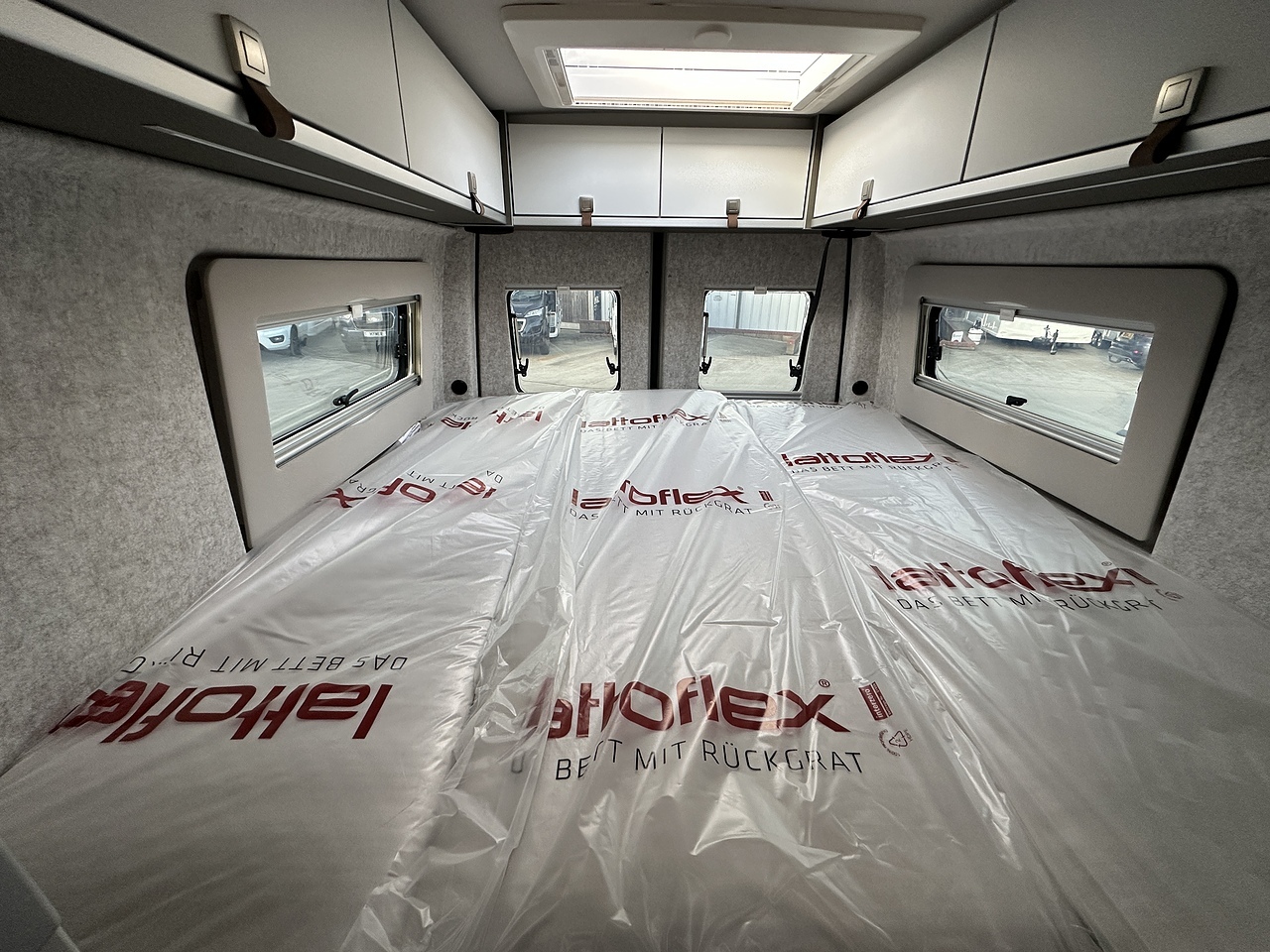 • Ambient lighting, Hymer HOME accessories, fitted sheet for fixed bed, and shower slats