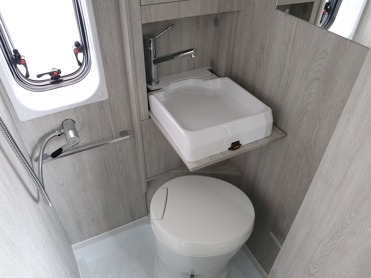 This model rolls majestically on 16-inch black alloy wheels, equipped with cruise control for smooth, effortless navigation across both highways and byways. The rear reversing camera ensures that every maneuver is executed with precision, enhancing safety and ease whether you’re backing into a scenic campsite or navigating through narrow village streets.