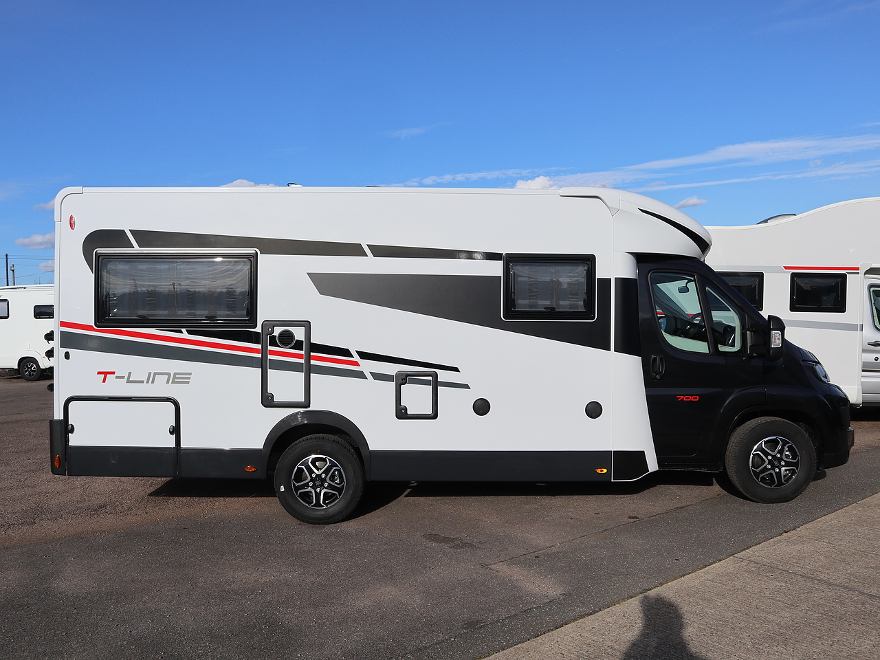 Step into a world of refined travel with the Roller Team T-Line 700, the perfect motorhome for couples or small families seeking the epitome of luxury and comfort on the road.