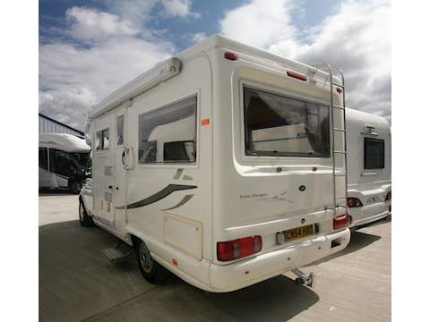 A 4 berth coachbuilt motorhome based on the Ford Transit 2.4 di turbo diesel chassis. Only 62,000 miles and 4 owners from new with popular 'U' shape rear wrap round lounge configuration. Comprehensively equipped with ABS, air bag, cab central locking and electric windows. Shower, wash basin & Thetford C200 swivel cassette toilet, Truma Ultrastore gas/240v water heater, Truma Trumatic gas/240v heating system, Country Leisure Caprice full cooker, Dometic 77ltr. gas/240/12v fridge-freezer, auxiliary battery & main 240v charger, side awning, ladder to roof, Omnistor electric entry step, large Heiki sunroof-roof light, fly screen & blinds, external side locker. Usual excellent Ford Transit drive-ability and reliability as standard.