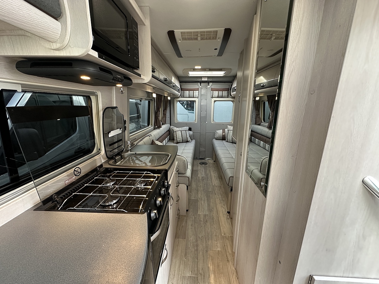 Throughout, Auto-Sleeper’s trademark build quality is evident — with solid cabinetry, LED lighting, and clever storage solutions that make the most of every inch of space.