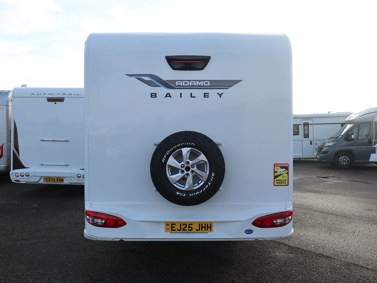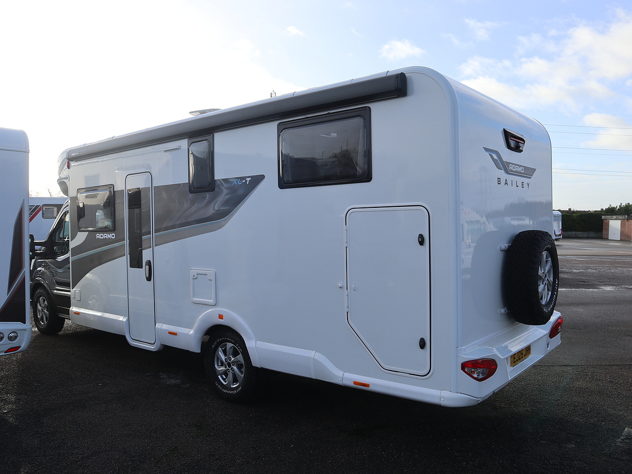 The Bailey Adamo XL-T is a spacious, wide-bodied 8-meter motorhome built on a Ford Transit chassis, featuring a front lounge, a central washroom, and rear fixed twin single beds, suitable for up to four people. It requires a Category C1 driving license due to its Maximum Technically Permissible Laden Mass (MTPLM) of 4,250kg.