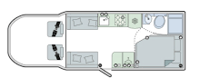 At the front of the motorhome, the spacious lounge area includes parallel seating and swivel cab seats, creating a bright and sociable environment for relaxing or dining. Please note, the front lounge is designed as a comfortable seating and dining area and does not convert into a double bed, making this an ideal layout for couples who prefer a fixed sleeping arrangement.