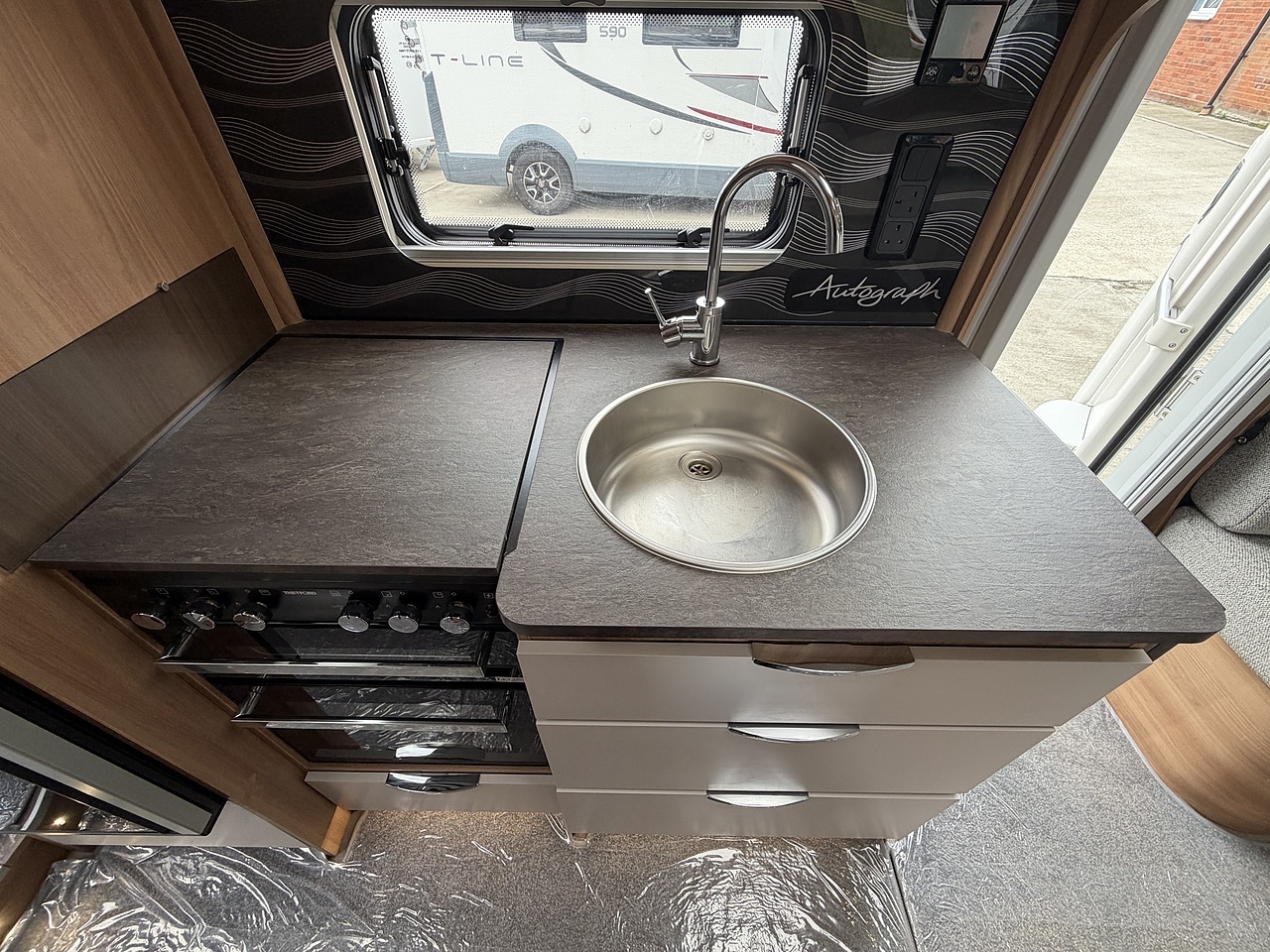 Inside, the Autograph benefits from Bailey’s high-quality ALU-TECH bodyshell construction, offering excellent insulation and durability for year-round use. The living space is finished with premium ‘Farringdon’ soft furnishings, modern cabinetry, and practical storage solutions throughout.