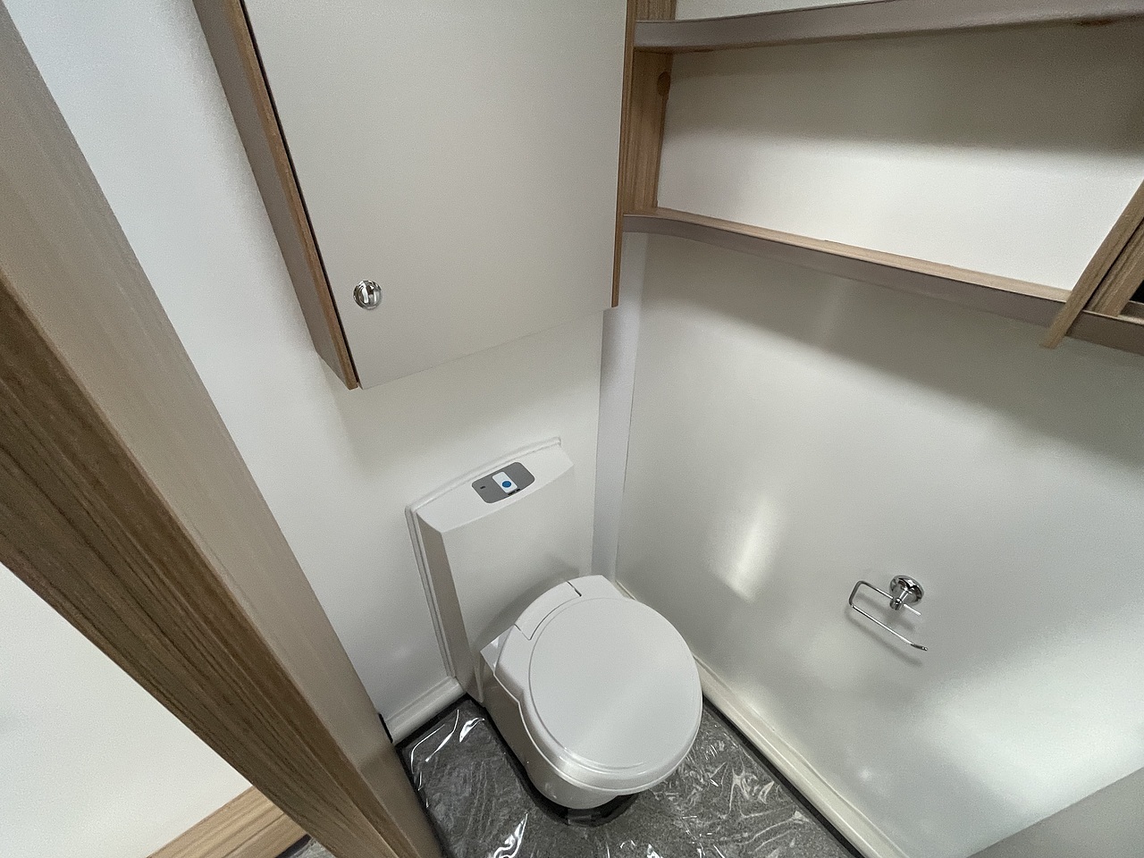 • Spacious washroom with separate shower cubicle, Thetford toilet, and vanity unit
