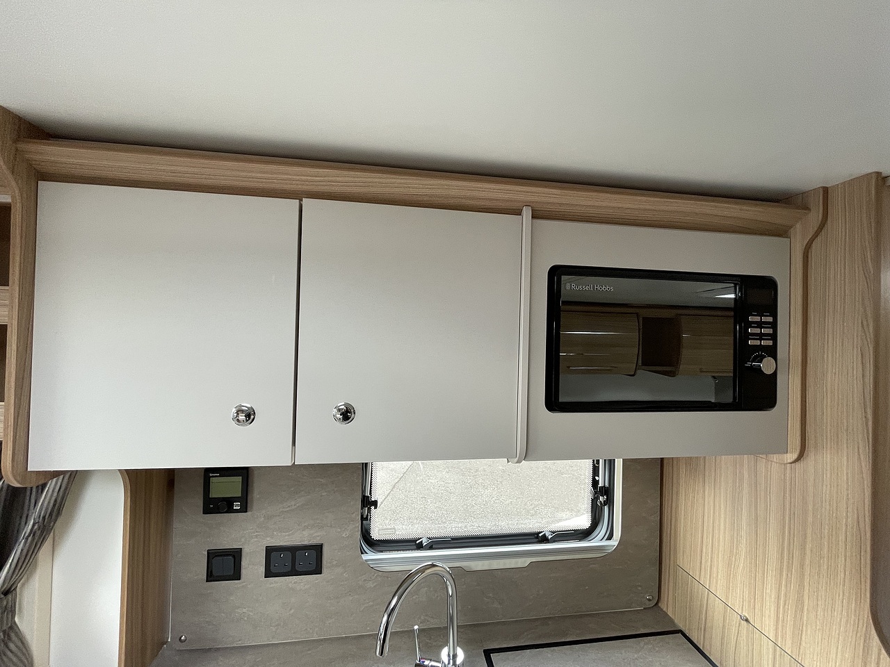 8FT wide, Exterior - 240V Socket, Exterior - Alko Chassis, Exterior - Alloy Wheels, Exterior - ATC stability control, Exterior - Corner Steadies, Exterior - External BBQ Point, Exterior - Hitch Head Stabiliser, Exterior - Solar Panel, Grade 3 insulation, Interior - 240V Hob Burner, Interior - Alarm, Interior - Battery Charger, Interior - Blinds, Interior - Blownair Heating, Interior - Cassette Toilet, Interior - Electric Heating, Interior - Electric Water Heater, Interior - Fly Screens, Interior - Full Sized Fridge/Freezer, Interior - Gas Heating, Interior - Gas Water Heating, Interior - Grill, Interior - Hob, Interior - Large Roof Light, Interior - Loose Fit Carpets, Interior - Microwave, Interior - Oven, Interior - Shower, Interior - TV Aerial, Layout - End Washroom, Layout - Fixed bed, Layout - Island Bed, SONOS Wireless speaker,