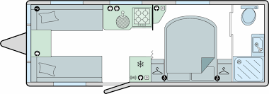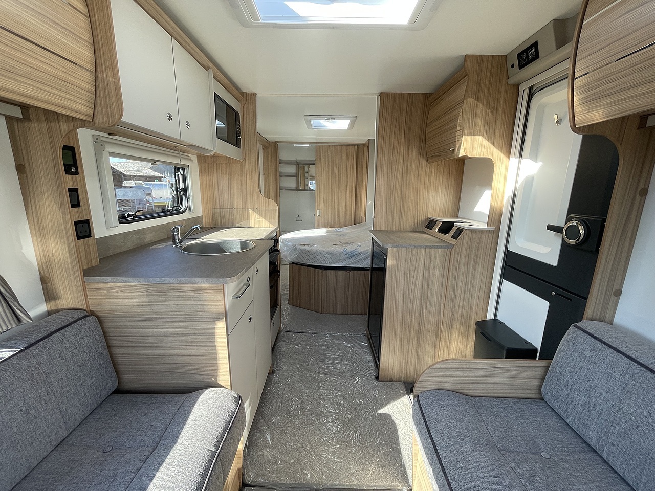 With its fixed double bed layout and spacious end washroom, this caravan is perfect for those who want a well-equipped, easy-to-tow caravan for both weekend breaks and extended touring.
