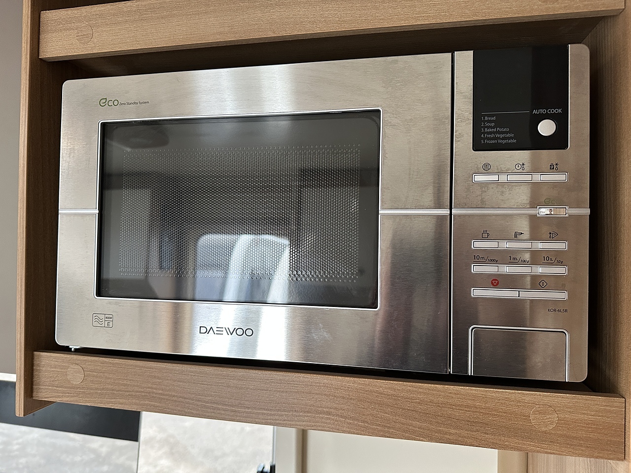 The front lounge offers bright, comfortable seating with large windows, ideal for relaxing or dining, and easily converts into a sleeping area. At the rear, the fixed double bed provides permanent sleeping comfort without the need for nightly setup.
