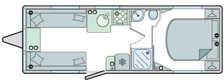 Built with Bailey’s trusted Alu-Tech construction, this caravan offers durability and excellent insulation, while Alde central heating ensures you stay warm and comfortable whatever the season.