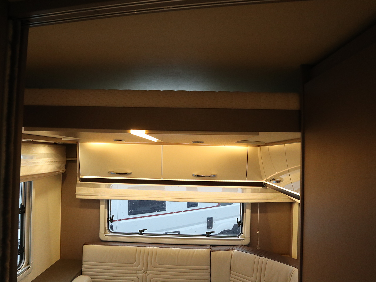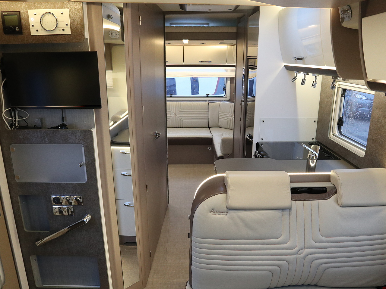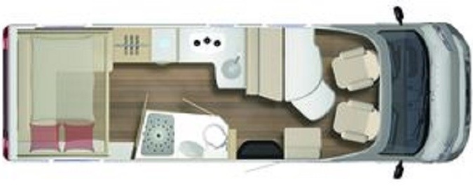 -Rear Lounge: The standout feature is a spacious L-shaped rear lounge that converts into a bedroom via an electrically operated drop-down transverse bed.