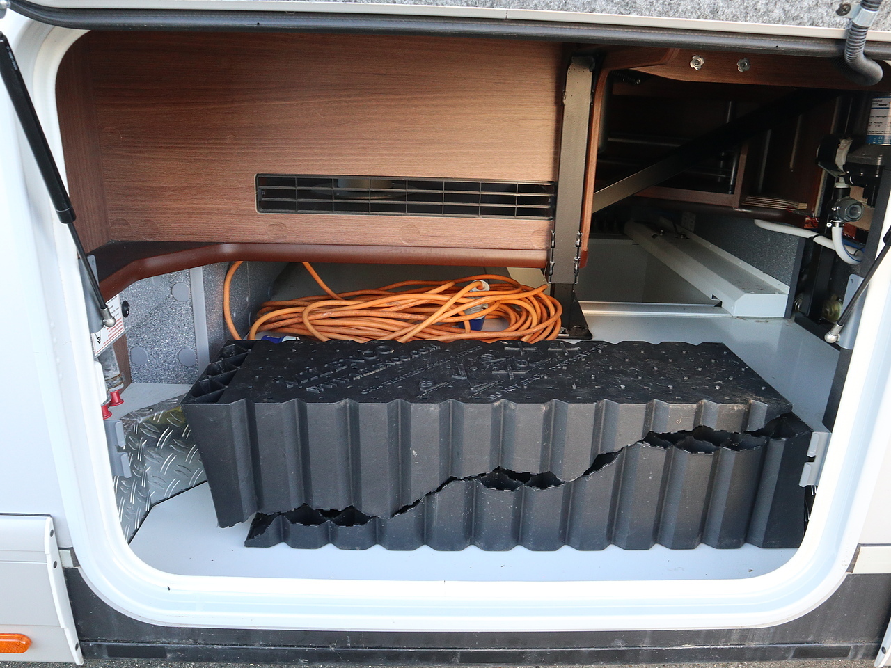 + Large, central through-loading space (interior height 22 cm), with extra-low double floor storage compartment (usable height 46 cm), convenient loading through entrance door via a large living area floor hatch