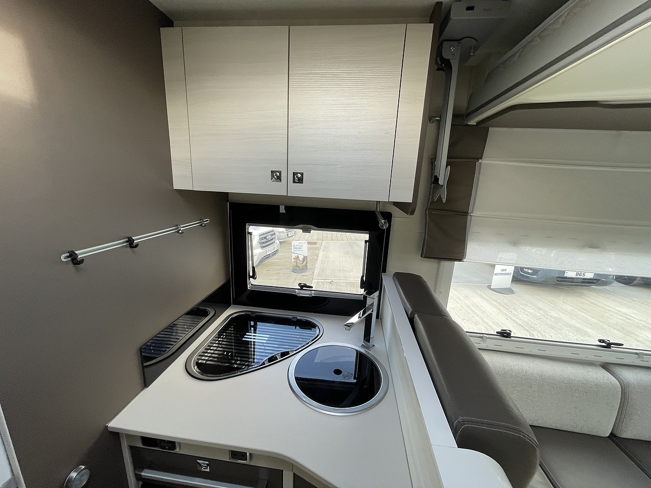 Cab Feature - Cab air con, Cab Feature - Radio, Cab Feature - Reversing Camera, Cab Feature - Steering wheel controls, Cab Feature - Swivel chairs, Central Locking, Electric Windows, Exterior - 240V Socket, Exterior - Alloy Wheels, Exterior - Awning, Exterior - Bike Rack, Exterior - Garage, Grade 3 insulation, Interior - Alarm, Interior - Blinds, Interior - Blownair Heating, Interior - Cassette Toilet, Interior - Drop Down Bed, Interior - Electric Heating, Interior - Electric Water Heater, Interior - Freezer, Interior - Fresh Water Tank, Interior - Fridge, Interior - Full Sized Fridge/Freezer, Interior - Gas Heating, Interior - Gas Water Heating, Interior - Hob, Interior - Large Roof Light, Interior - Loose Fit Carpets, Interior - Mains Electric, Interior - Oven, Interior - Shower, Layout - Electric drop down bed, Layout - End Washroom, Sun Roof,
