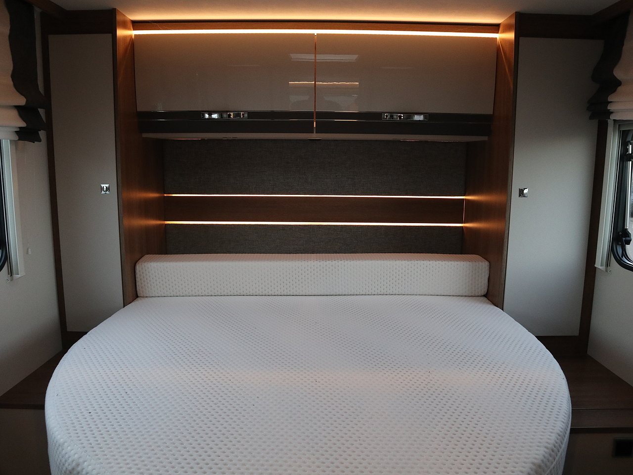 Sleeping: A rear island bed is the primary sleeping area. And a drop-down double bed over the lounge can increase capacity to four berths.