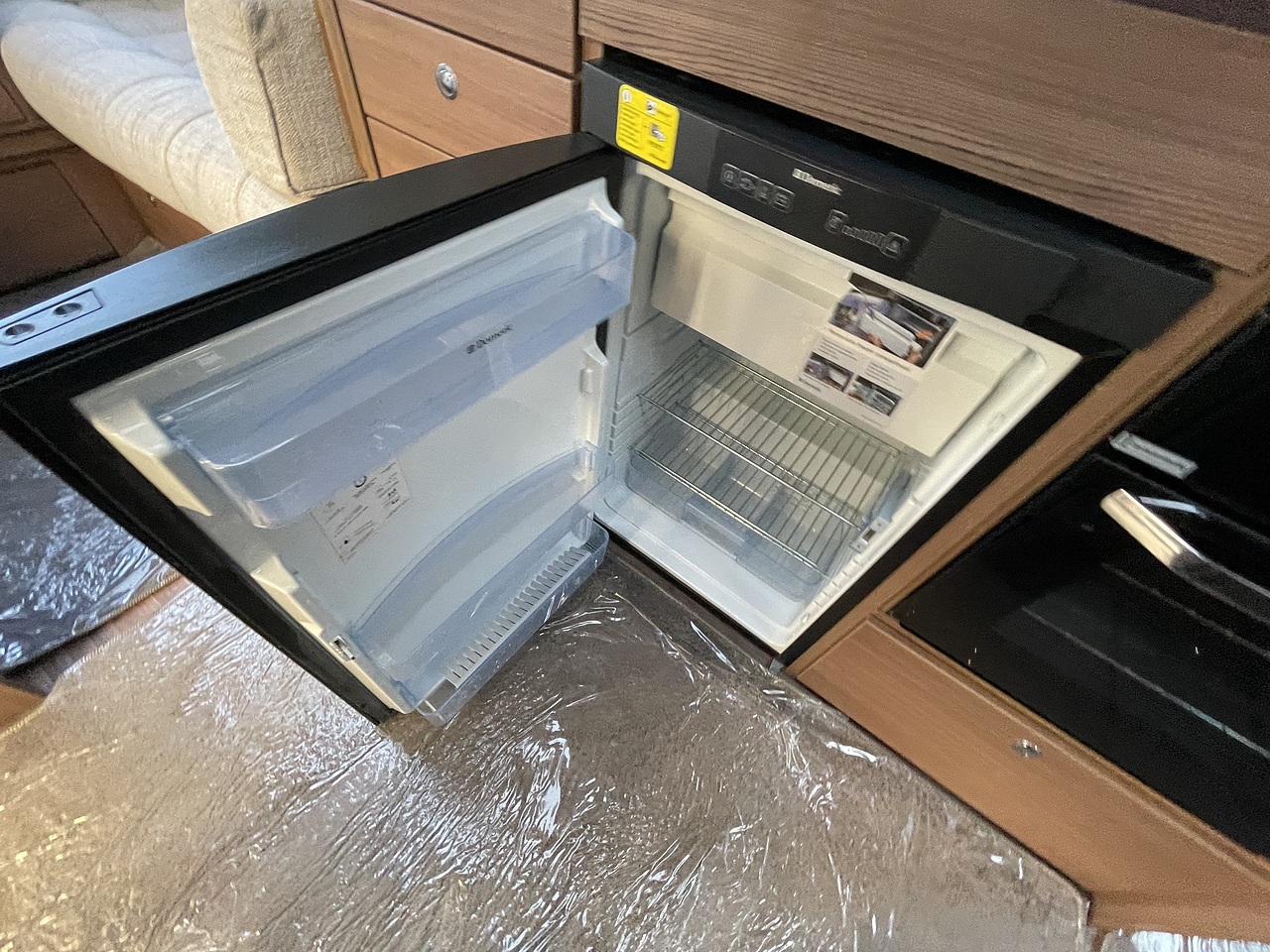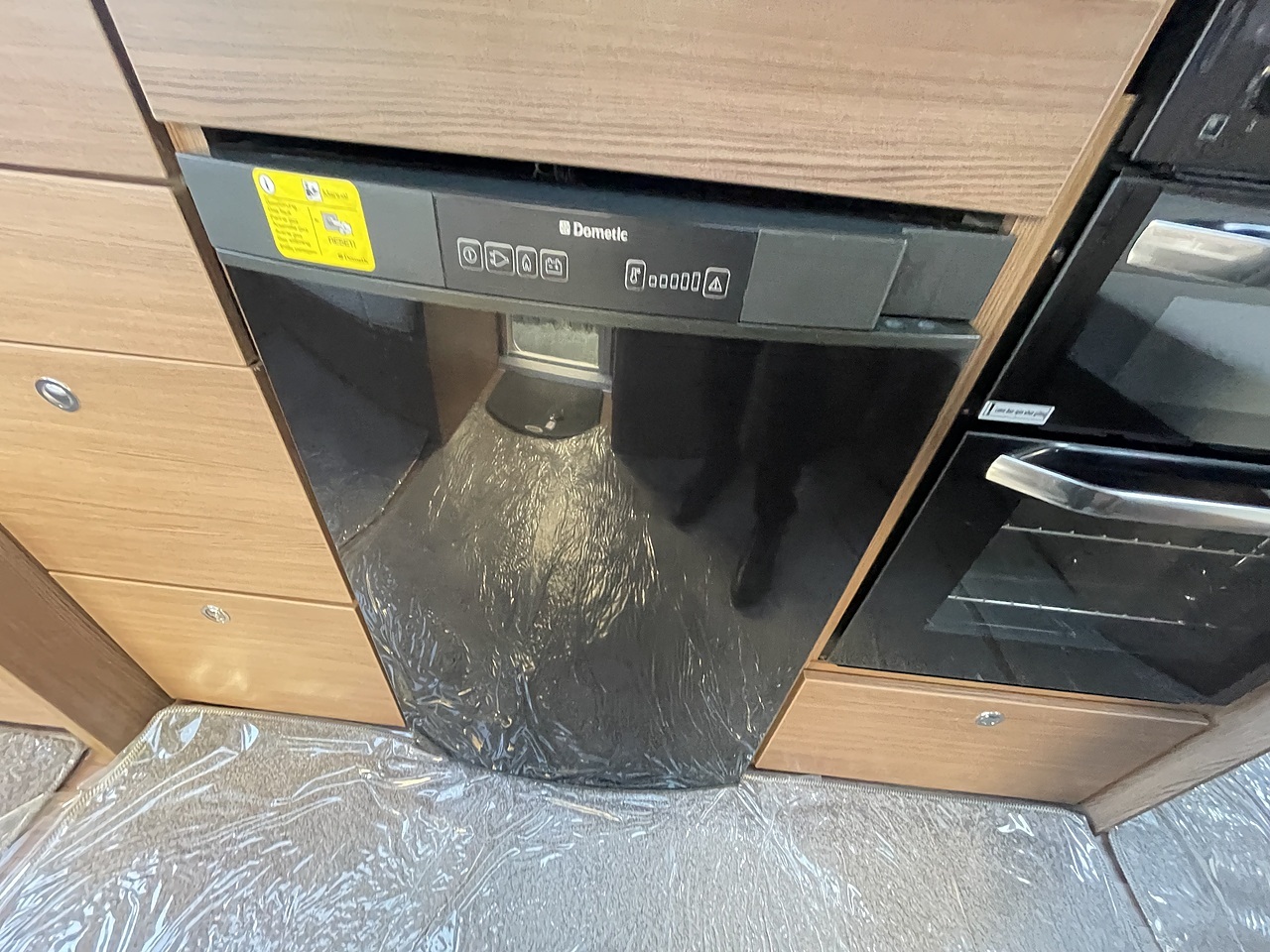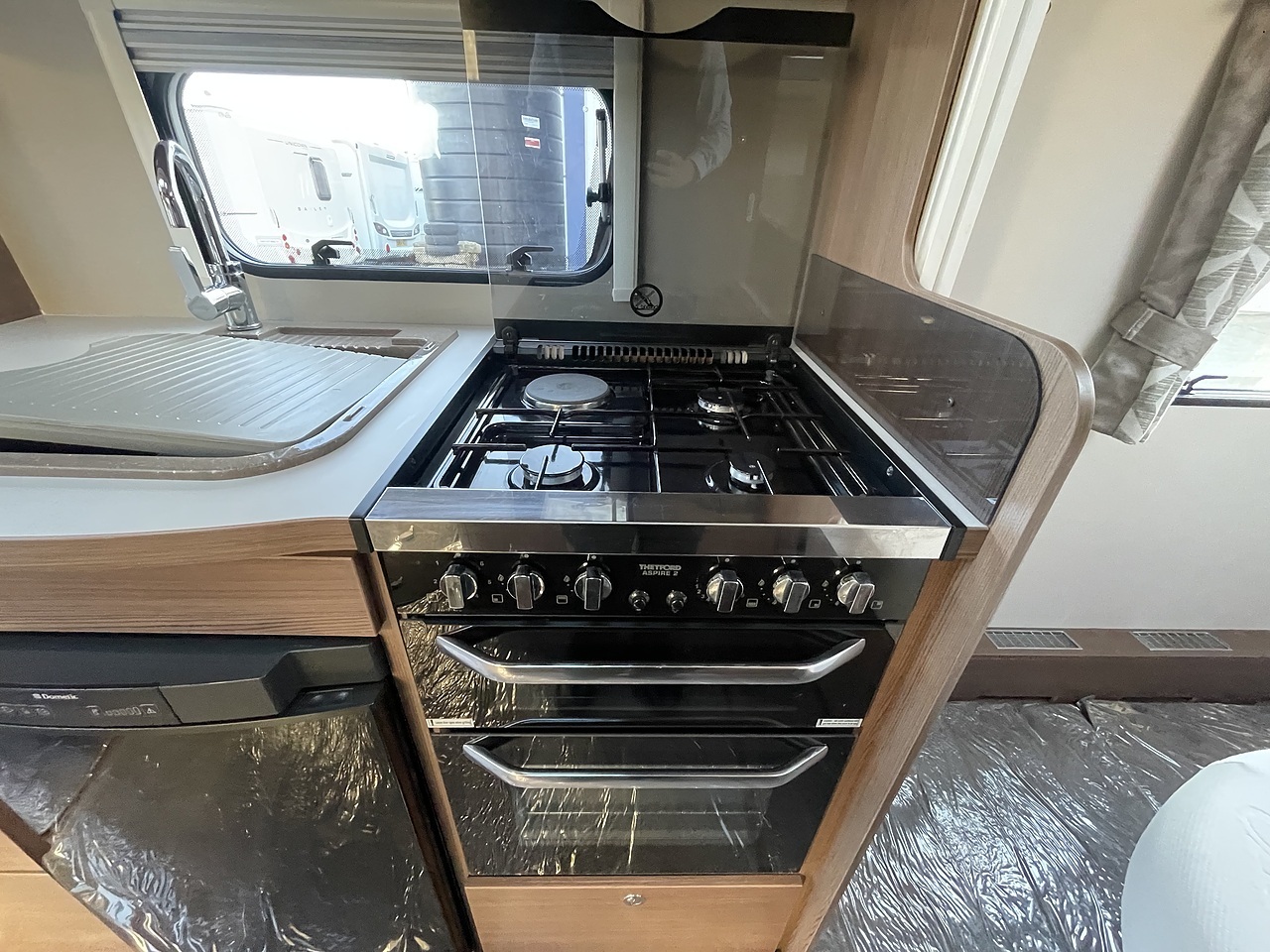 The central kitchen includes a hob, oven, grill, sink, and fridge freezer, giving you everything needed for self-catering on the road.
