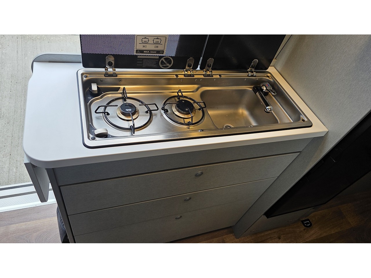 Finished in the exclusive Capri Blue Evolution colour scheme with black alloy wheels, it’s a head-turner on the road and at every campsite.