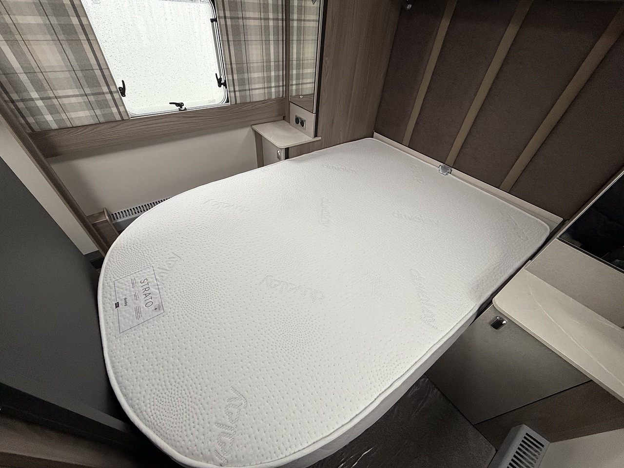 Inside, you’ll find a thoughtfully designed layout featuring a spacious front lounge that easily converts into additional sleeping space, a well-equipped central washroom, and a luxurious fixed rear island bed — ensuring a restful night’s sleep wherever your travels take you. The bright, modern interior is enhanced by soft furnishings, ambient LED lighting, and Swift’s renowned build quality, creating a truly welcoming atmosphere.